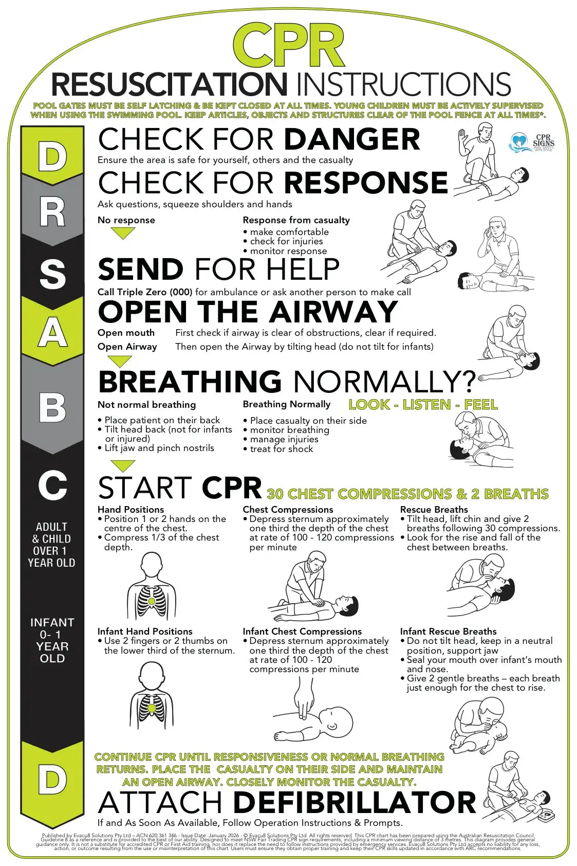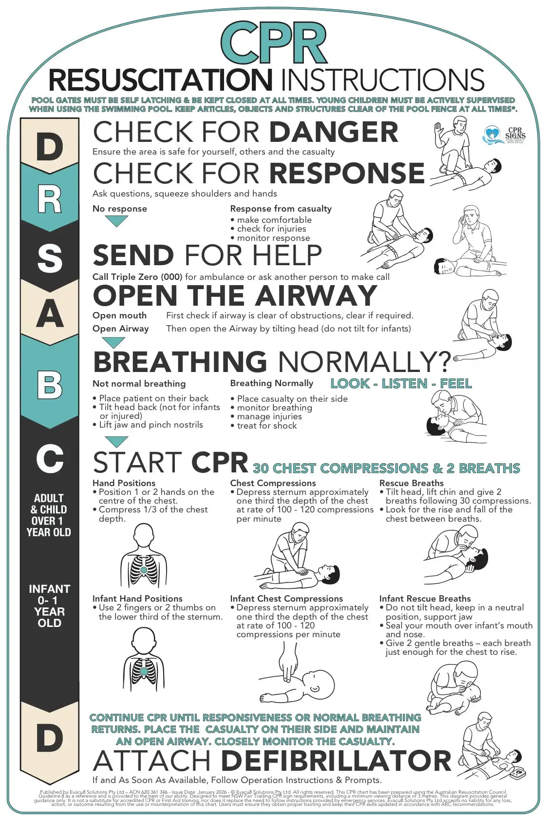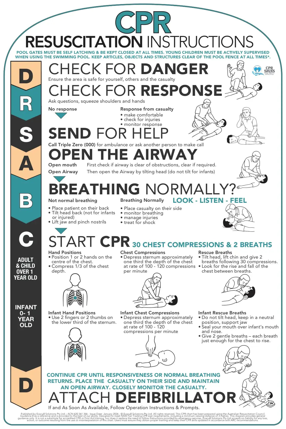Premium CPR instruction signs provide up-to-date, accurate information on CPR procedures. They are based on the latest Australian Resuscitation Council (ARC) guidelines and are regularly reviewed to ensure accuracy and compliance with current first-aid practices.